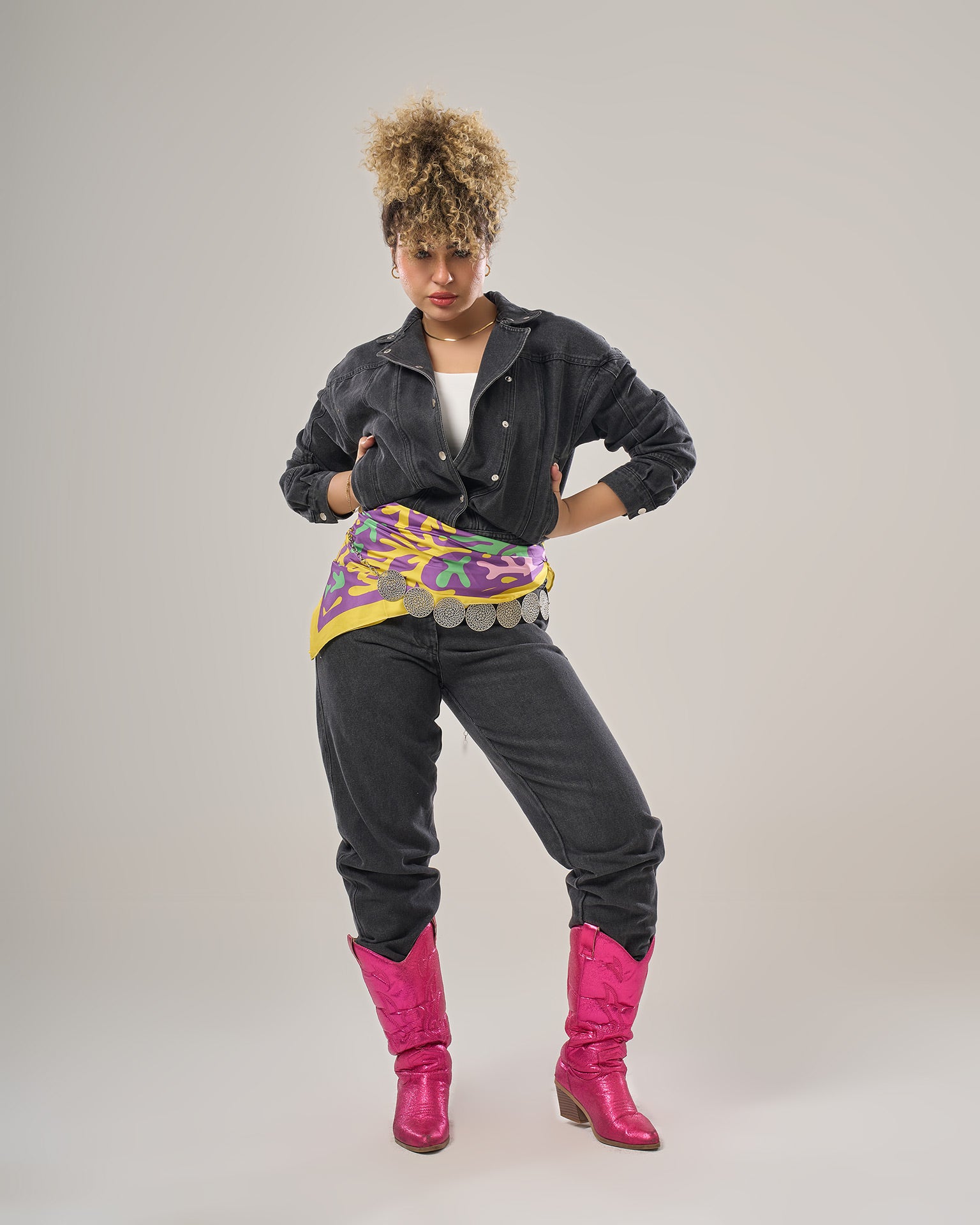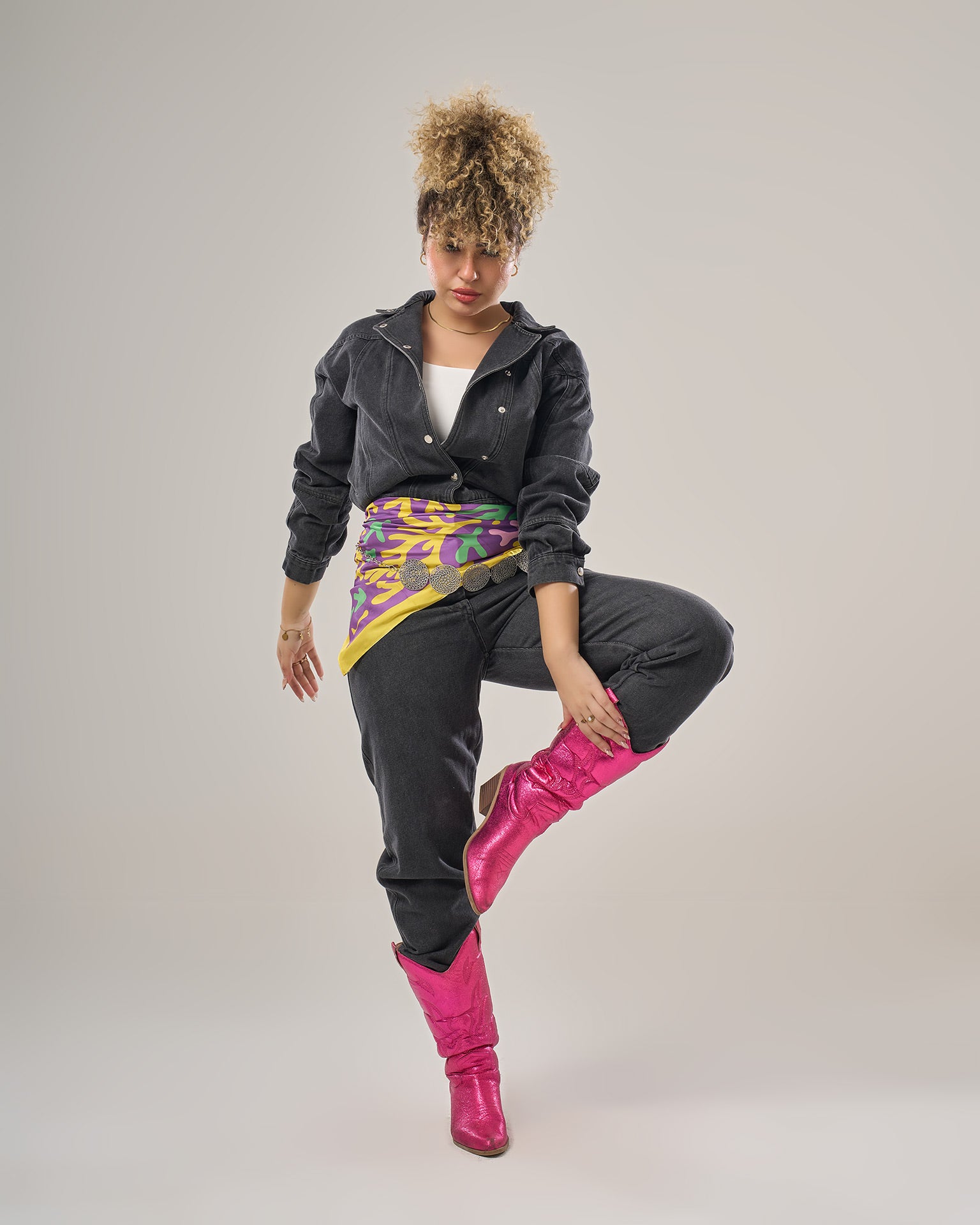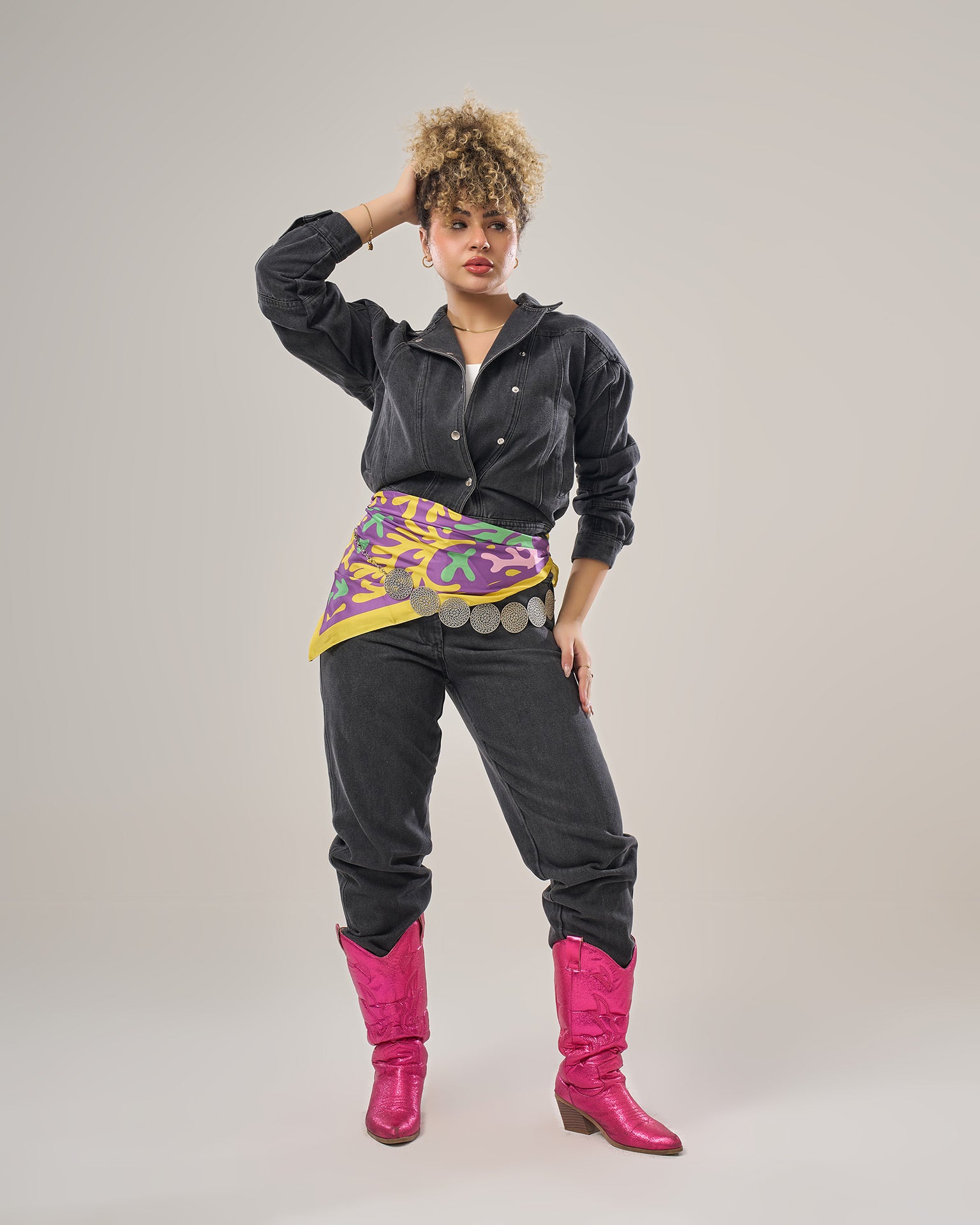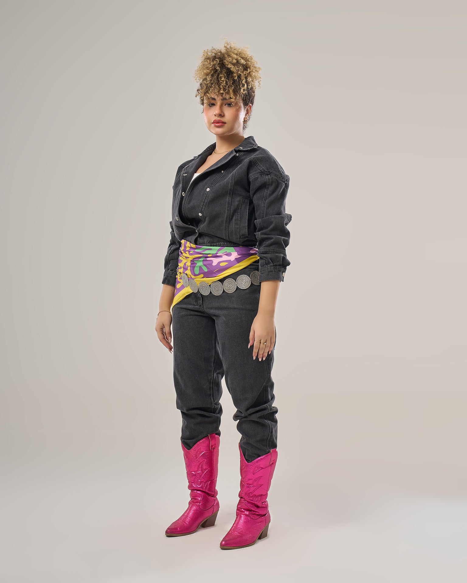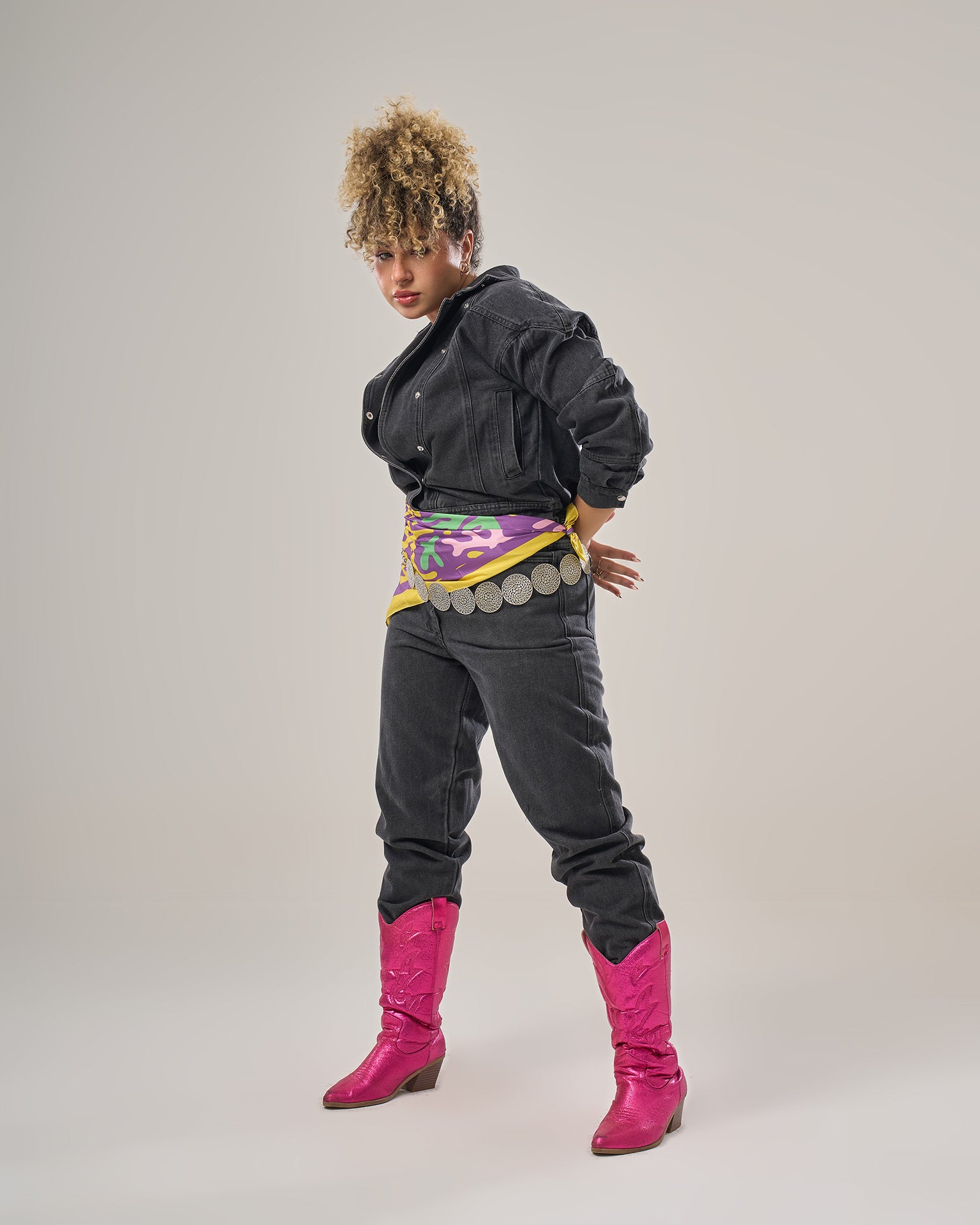 Denim jumpsuit long sleeves loose fitting